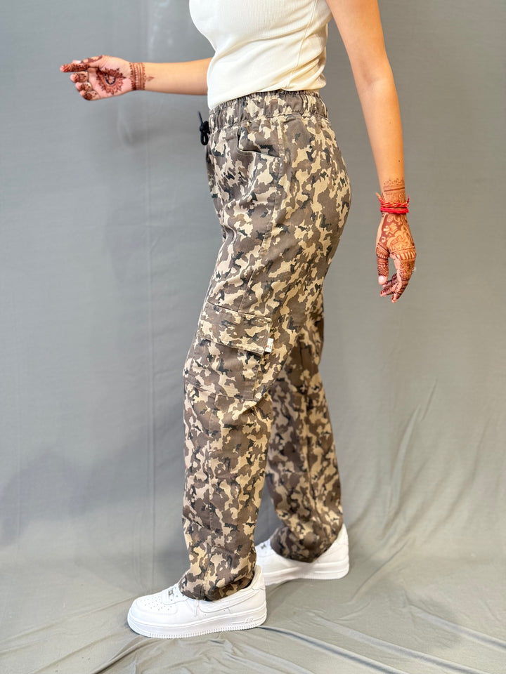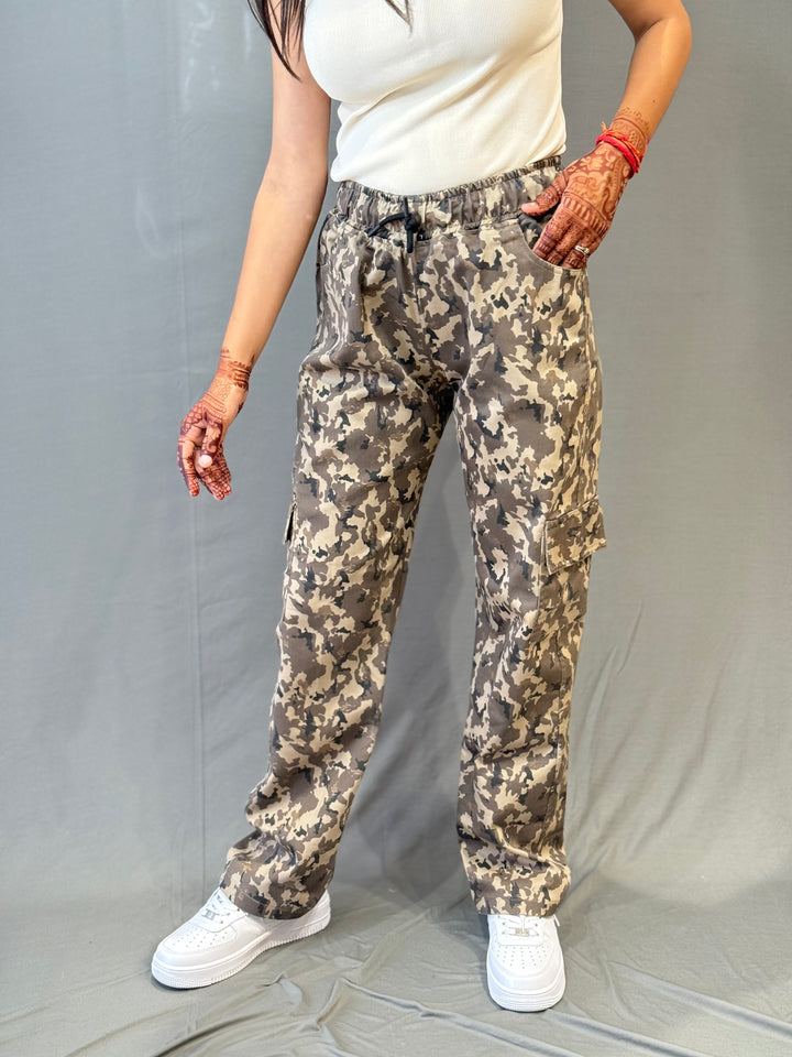 Add a bold streetwear edge to your wardrobe with these Korean-inspired camo cargo pants. Featuring a relaxed fit with an elastic waistband and drawstring for comfort, these cargos are both stylish and functional. The camo print gives a trendy urban vibe, while the multiple pocket design keeps it practical for everyday wear. Perfect for casual outings, college looks, or street-style fashion.