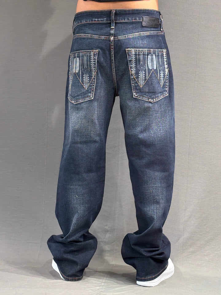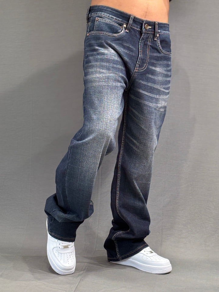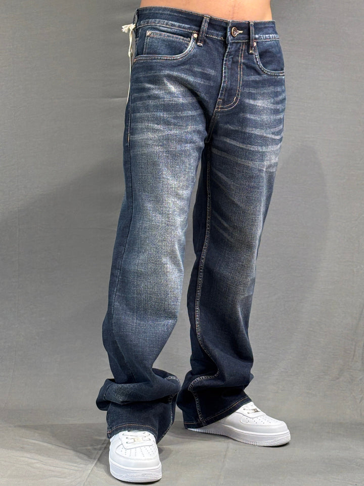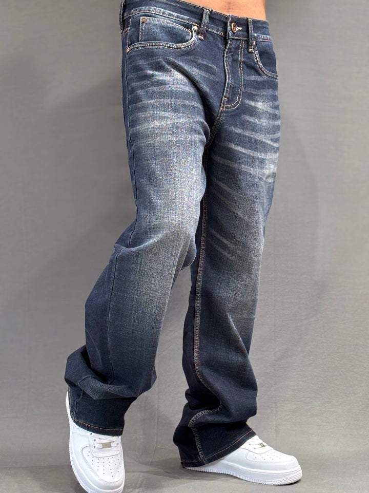 These Dark Wash Straight-Leg Jeans are the perfect blend of casual comfort and classic style. Designed with a relaxed fit, they feature natural fading and whisker details that give them a worn-in, vintage-inspired look. The durable denim fabric ensures long-lasting wear, while the straight-leg cut offers versatility to pair with sneakers, boots, or casual tops. A wardrobe essential for everyday streetwear or casual outings.