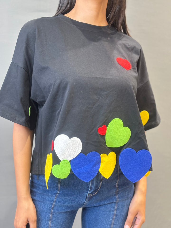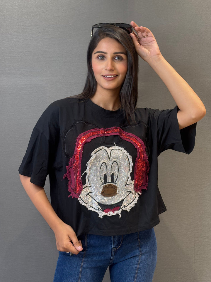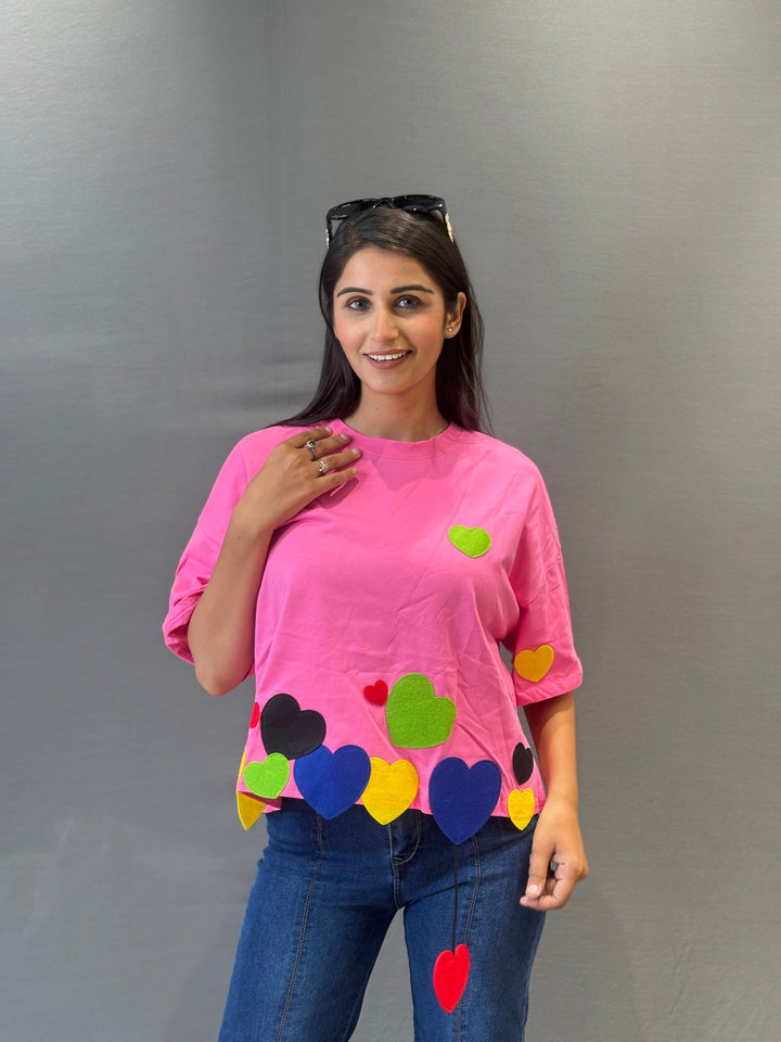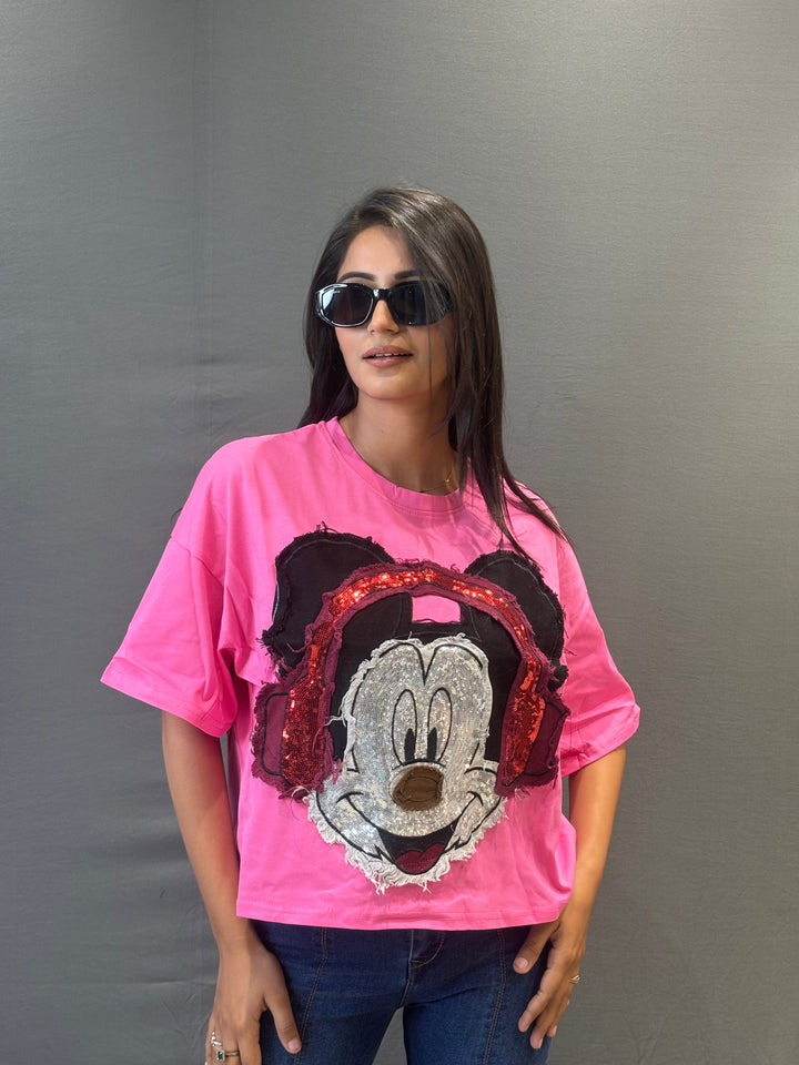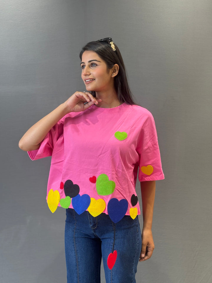 Stay effortlessly stylish with this oversized embellished patch t-shirt, designed for comfort and statement style. Made from soft, breathable fabric, it features intricate bead and pearl work on the front for a chic, standout look. Perfect for pairing with jeans, shorts, or skirts, this versatile tee comes in multiple designs and colors to match your mood and outfit. Ideal for casual outings, coffee dates, or relaxed weekends.