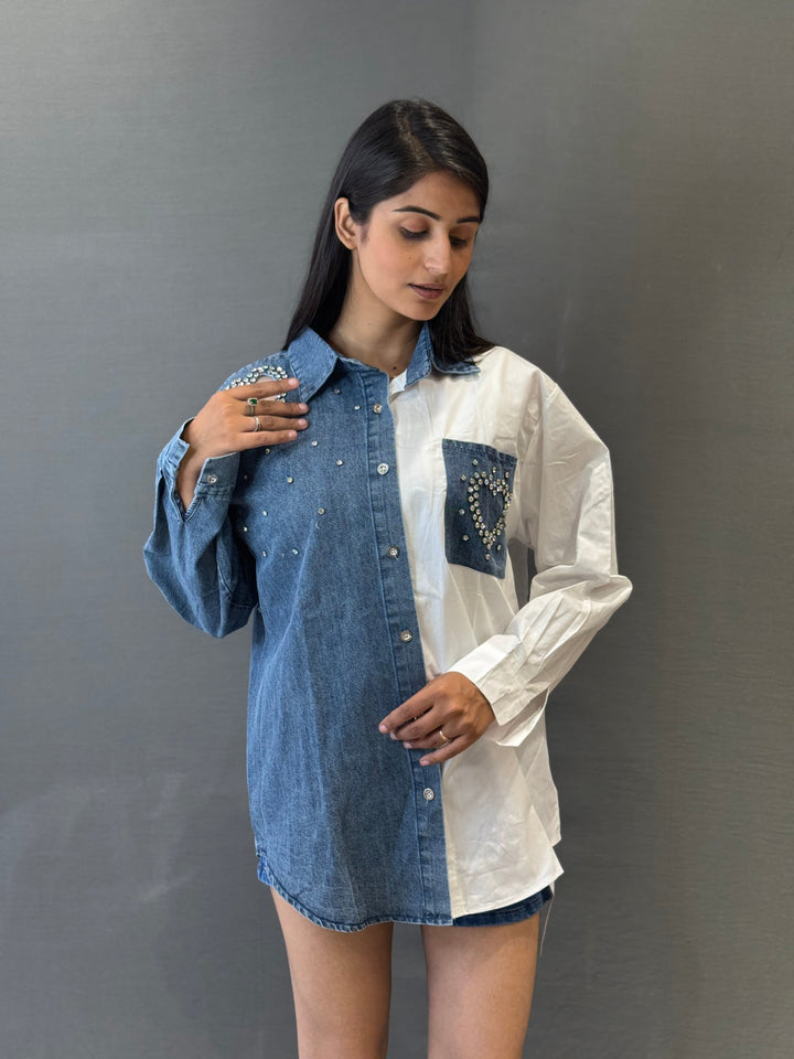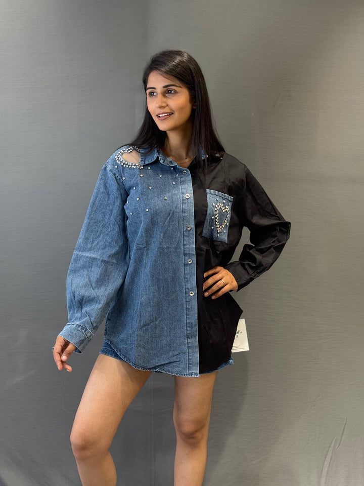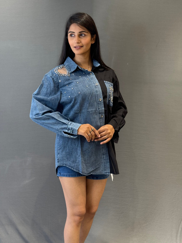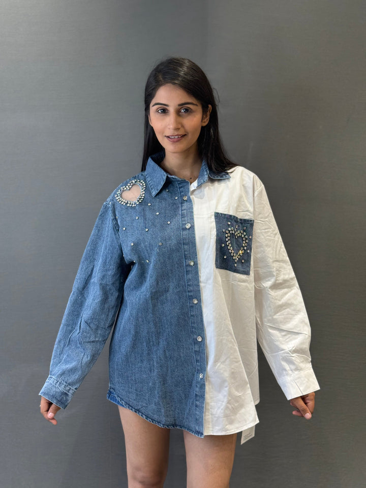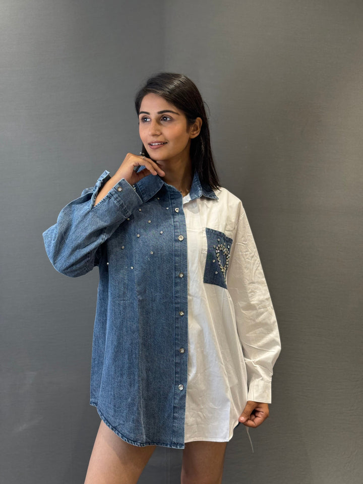Step up your casual wardrobe with our oversized embellished collection, featuring both shirts and t-shirts in unique designs. Crafted from premium denim, cotton, or jersey fabrics, each piece is adorned with beads, pearls, or sequins for a statement look. Whether you choose a classic tee, a bold color-block shirt, or a patterned style, these versatile pieces pair perfectly with jeans, shorts, or skirts. Ideal for coffee dates, casual outings, or weekend adventures. Available in multiple colors and patterns to suit every mood.