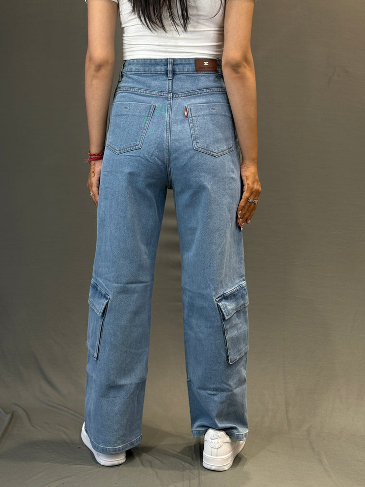 Women’s High-Waist Cargo Jeans with Side Stripes