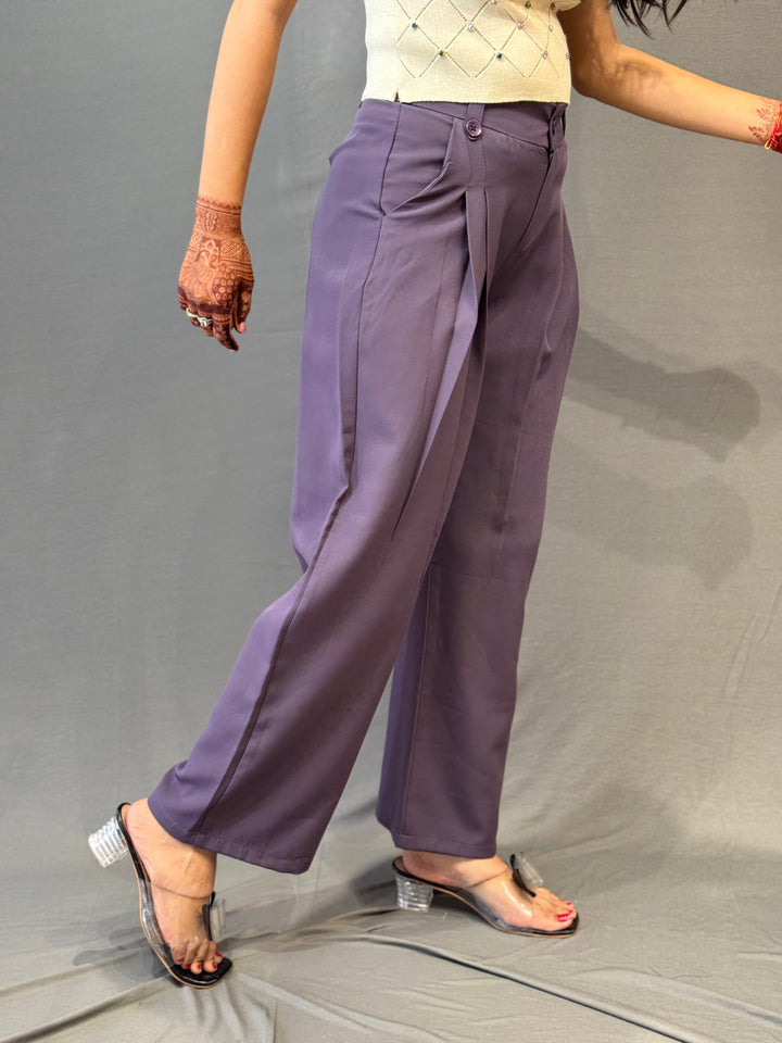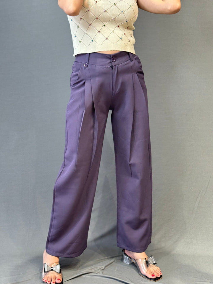 Elevate your everyday style with these chic Korean-inspired high-waist pants. Designed in a trendy wide-leg fit with soft pleats, they bring comfort and sophistication together. The smooth fabric drapes beautifully, while the deep purple tone adds a touch of elegance—perfect for both casual outings and office wear.