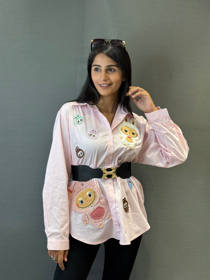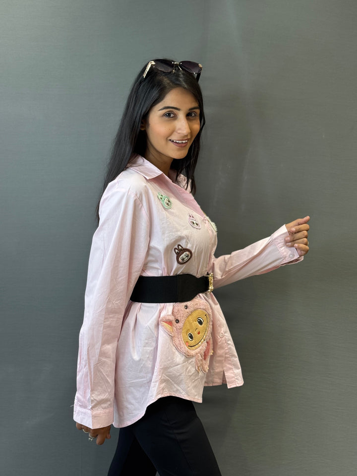 Elevate your casual wardrobe with our Playful Patchwork Shirt, a fun twist on the classic button-down. This eye-catching piece features adorable embroidered cartoon patches in vibrant, high-quality threads that add personality and charm to every outfit. The relaxed-fit silhouette ensures comfort, while the crisp fabric drapes effortlessly for a flattering look. Paired with a statement waist belt, it transitions easily from laid-back daywear to trendy evening style. Available in multiple color options, each shade brings its own mood, making it perfect for mixing and matching with jeans, trousers, or skirts. Whether you choose soft pastels or bold tones, this shirt is designed to spark compliments and keep your style uniquely playful.