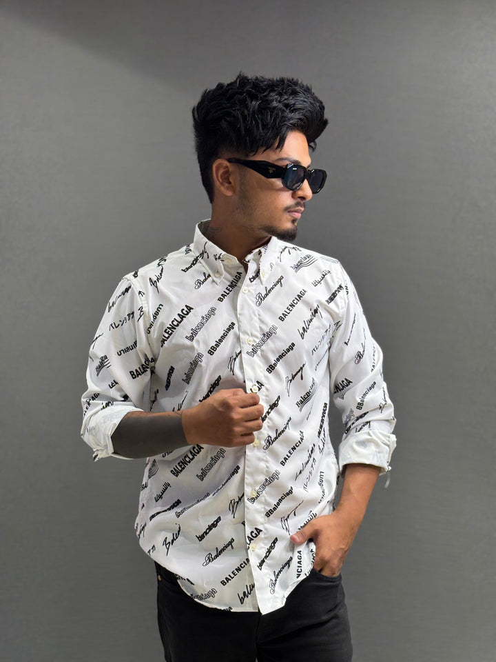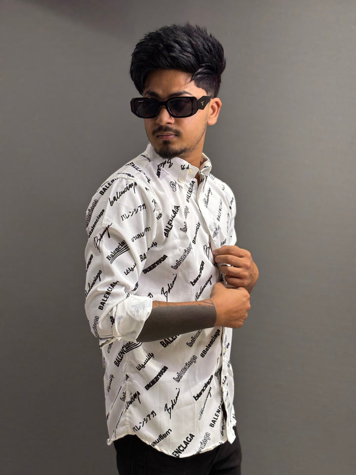 Stand out in style with this bold Men’s White Printed Logo Shirt. Designed with an all-over statement print, it blends modern streetwear vibes with a classic button-up silhouette. Perfect for nights out, casual hangouts, or layering under a jacket for a sharp urban look.