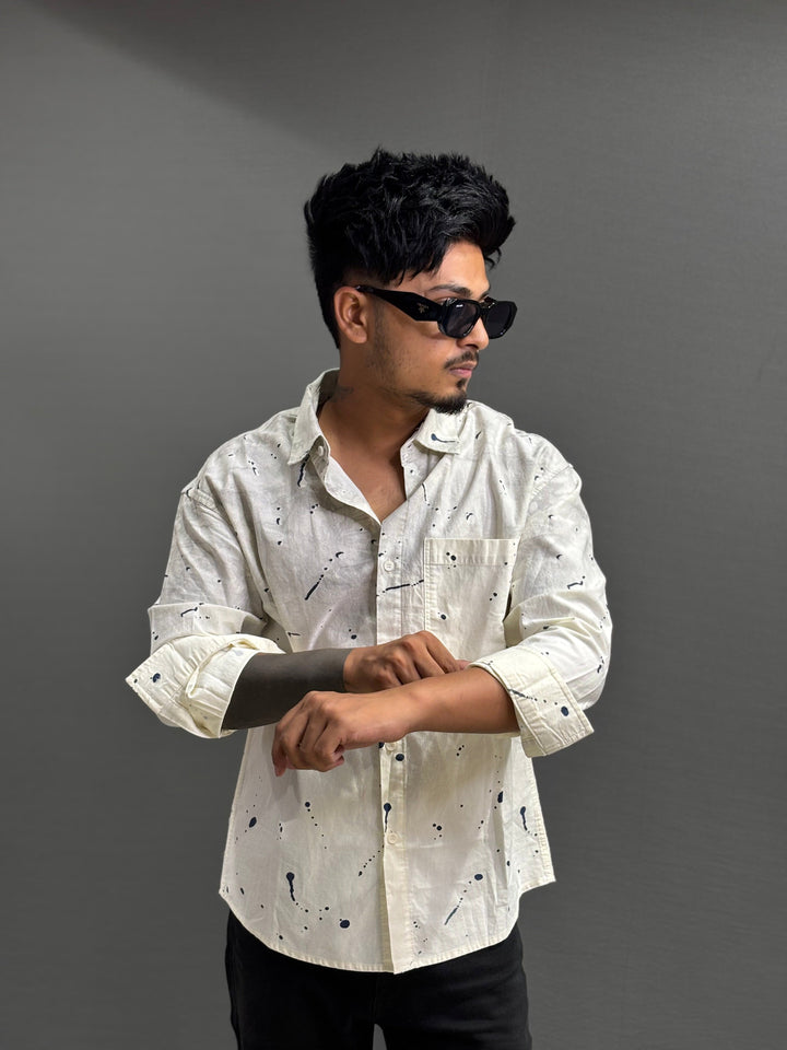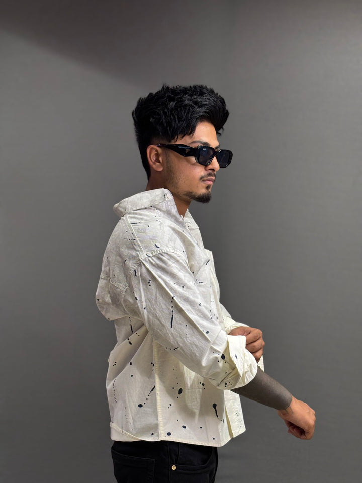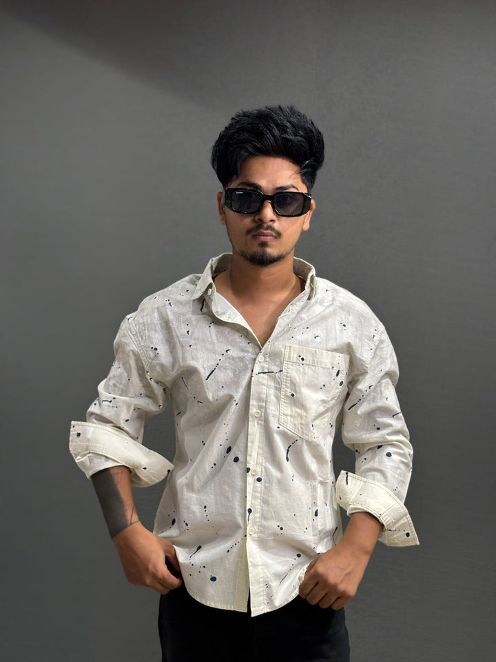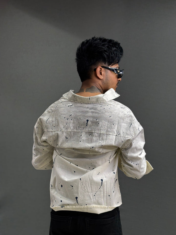 KOREAN OFF WHITE DENIM SHIRTS AND DESIGN WITH ATTRACTIVE PAINT DROP EEFECT