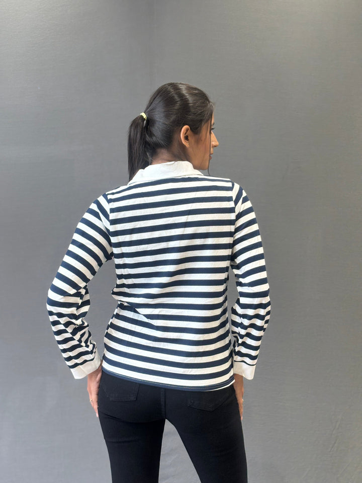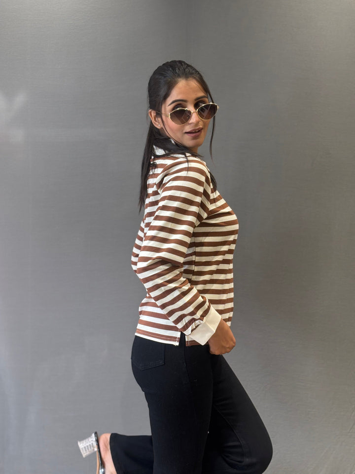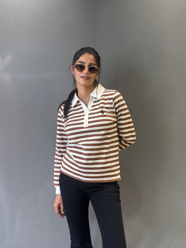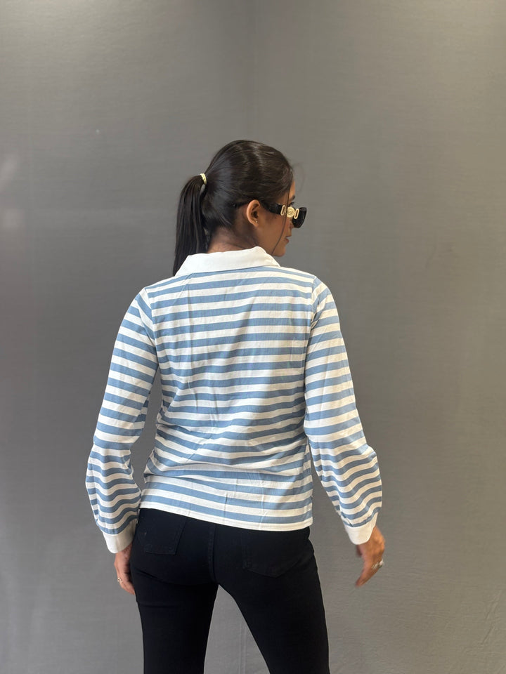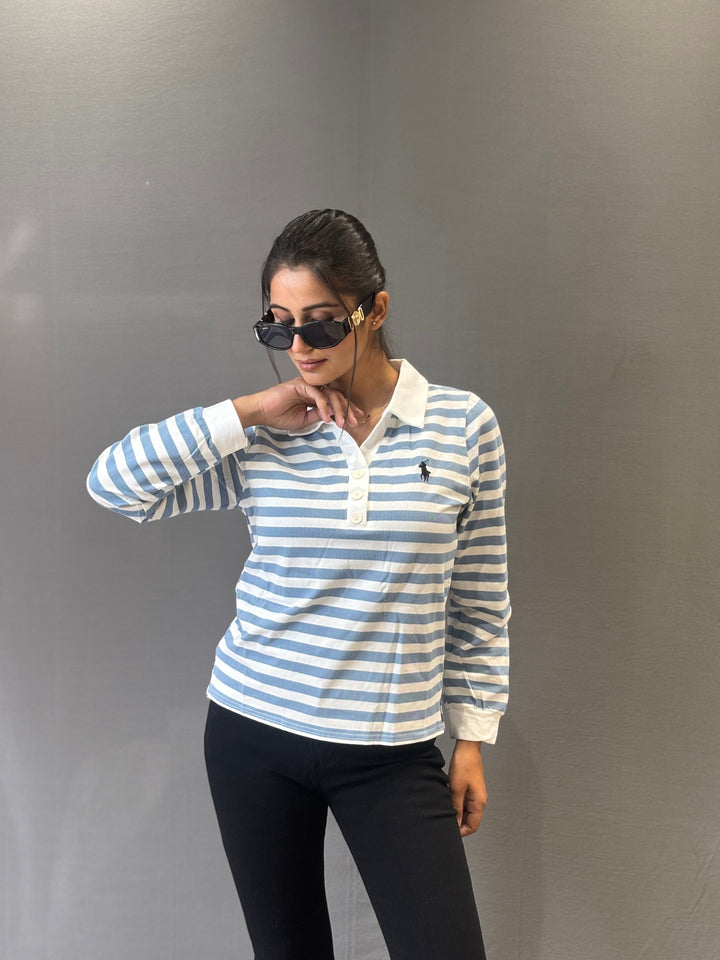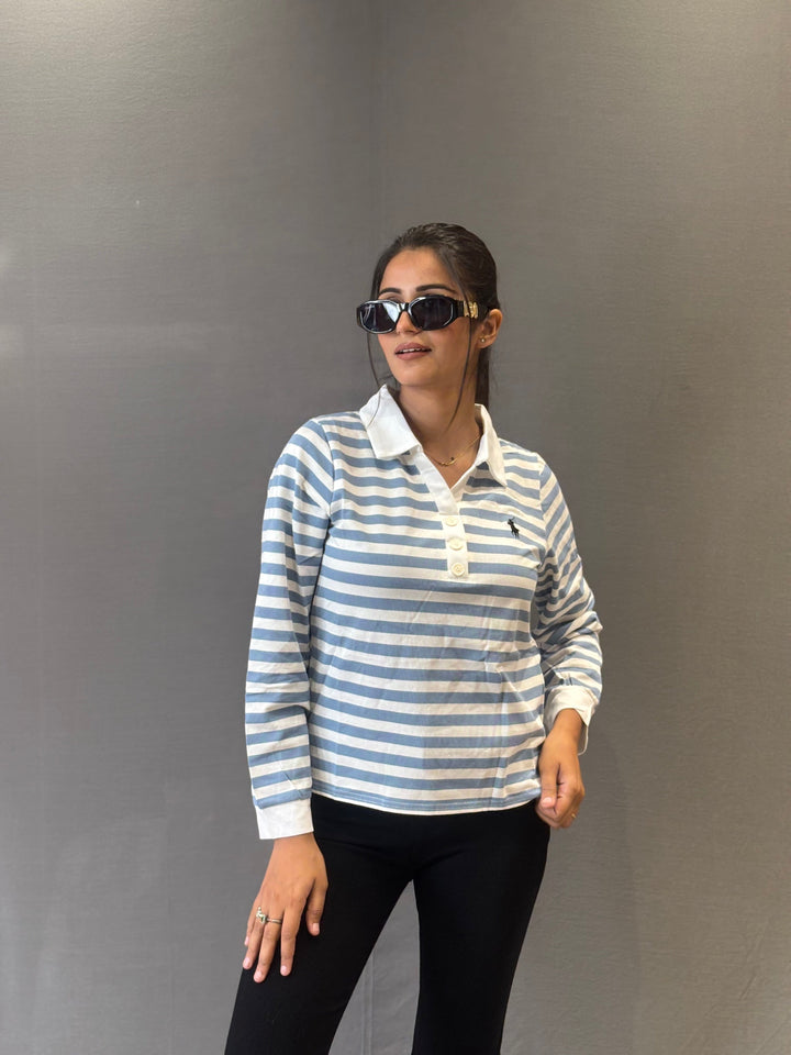 Elevate your casual style with this chic black and white striped polo top. Featuring a classic collared neckline, button placket, and long sleeves, this piece blends timeless design with everyday comfort. Made from soft, breathable fabric, it’s perfect for effortless pairing with jeans, skirts, or trousers. Ideal for brunch dates, casual Fridays, or laid-back weekends, this versatile top will be your go-to wardrobe staple.