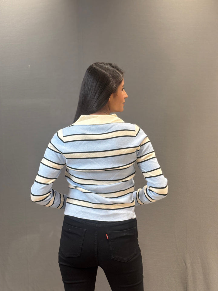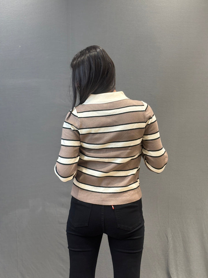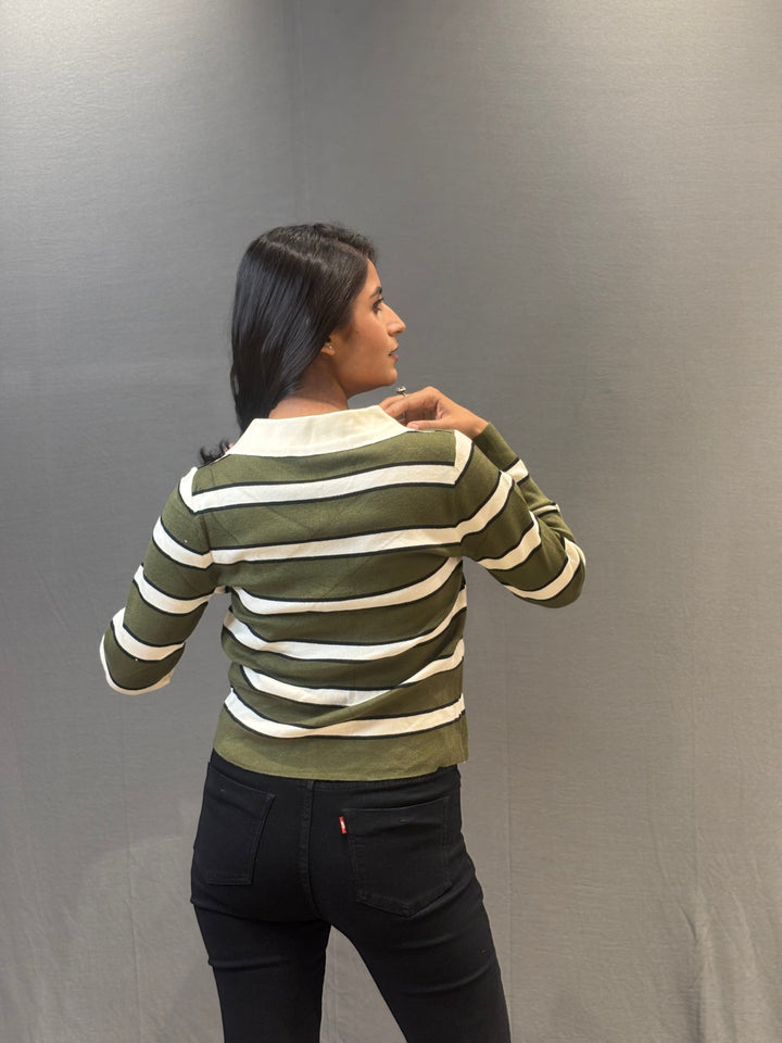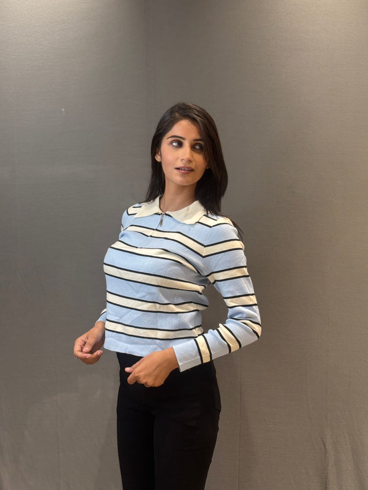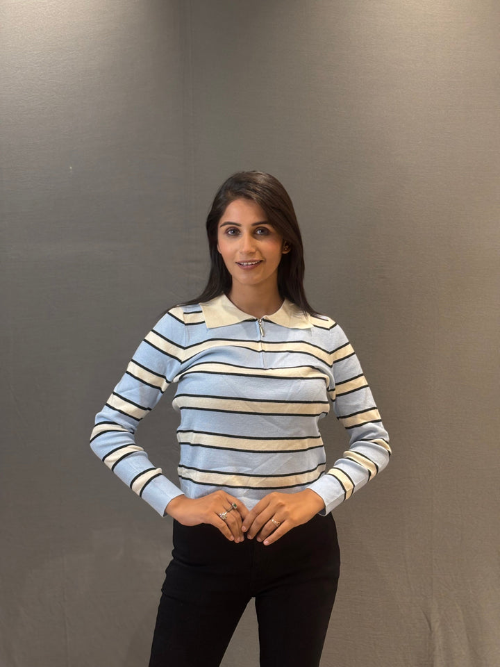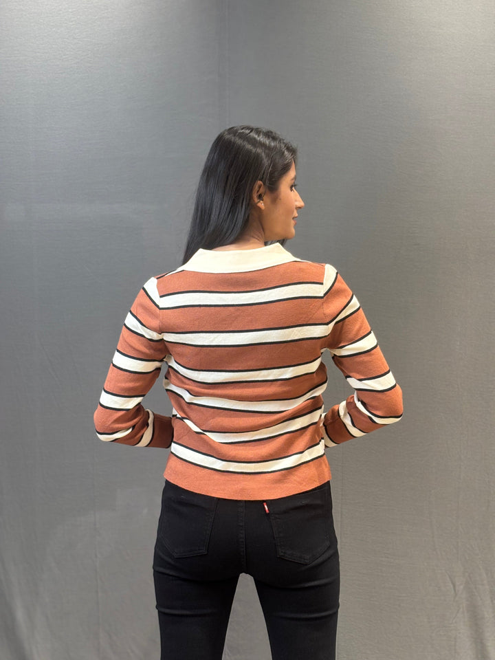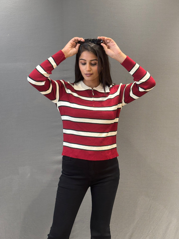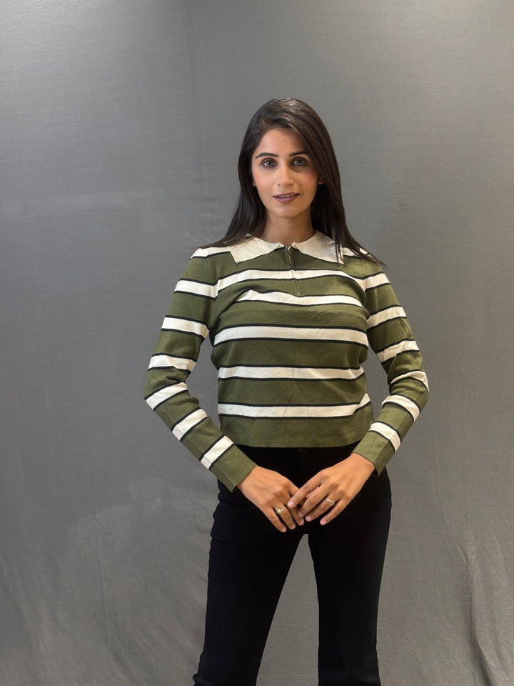 Stay cozy and stylish with our Women’s Striped Knit Sweater, designed with a classic collared neckline for a chic twist. Made from soft, breathable knit fabric, this top is perfect for layering or wearing on its own. The timeless horizontal stripe pattern adds a touch of casual charm, making it ideal for work, outings, or relaxed weekends.